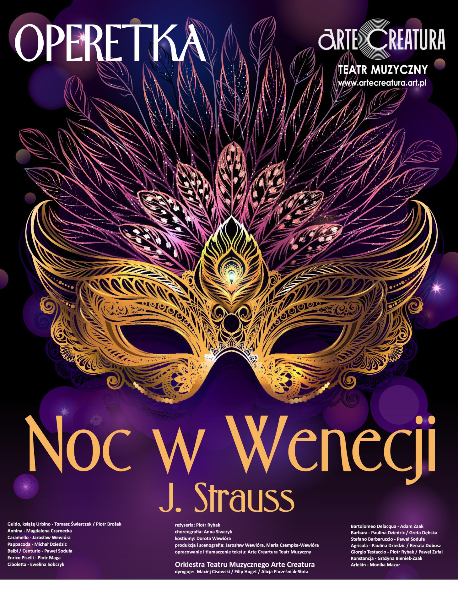 Noc w Wenecji Straussa zabierze widzów w niezwykłą podróż na weneckie ulice i place, na których trwa właśnie karnawałowe szaleństwo. Operetka kochana jest za doskonały humor, wspaniałą muzykę przepełnioną tanecznymi rytmami i cudowny koloryt weneckiego karnawału. Znajdziemy w niej same szlagiery na czele z serenadą Zejdź do gondoli.