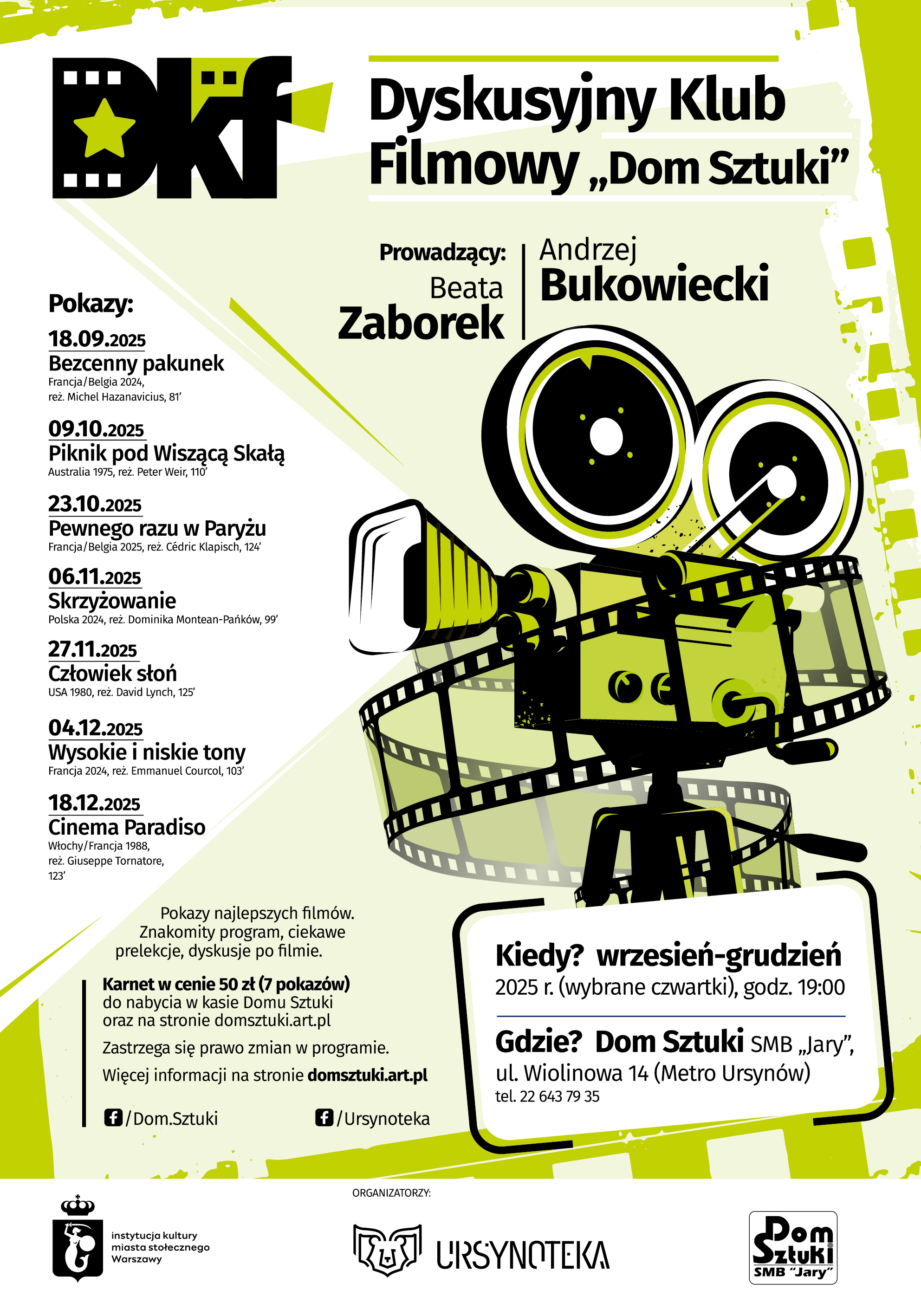 Organizatorem Dyskusyjnego Klubu Filmowego „Dom Sztuki” jest Dom Sztuki SMB "Jary" oraz Ursynoteka.