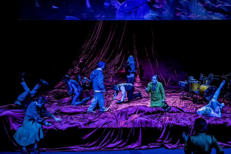 W tym spektaklu akcja nietypowo rozpoczyna się na widowni. W narastającym oczekiwaniu na sceniczną akcję z widowni wyłaniają się poszczególne osoby dramatu: wygadany inteligent, zachowawcza urzędniczka, nerwowy awanturnik, matka karmiąca, nieznośny nastolatek i inne postaci. Na widowni robi się śmiesznie i groźnie. Akcja powoli przenosi się na scenę, a bohaterowie musza skonfrontować się z niepokojącą kurtyną.