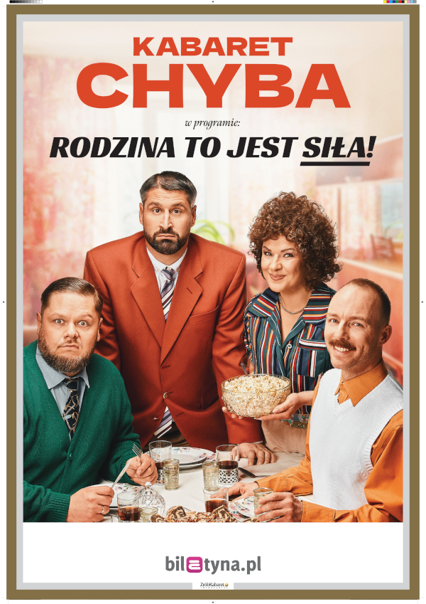 “Rodzina to jest siła! “ śpiewała kiedyś Kayah i artyści z Kabaretu Chyba wzięli to sobie do serca - tak brzmi tytuł ich najnowszego programu! Po sukcesie spektaklu “Cztery” Chyby ruszają w Polskę z absolutnie nowymi skeczami i piosenkami. A z czego będziemy się śmiać? Z tego co dla każdego Polaka jest najważniejsze! Rodzina, ach rodzina… Czasem wkurza, czasem śmieszy, ale jest!