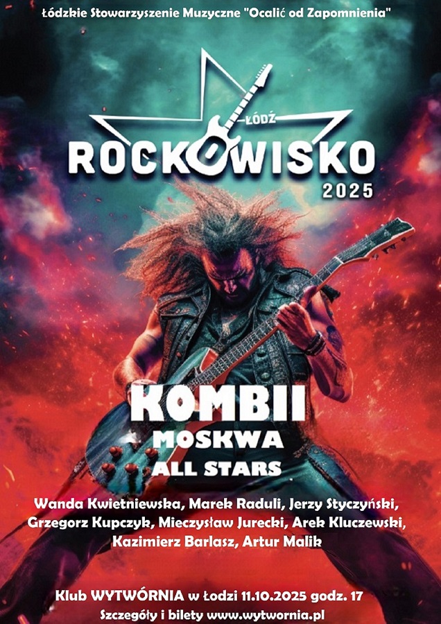 Łódzkie Stowarzyszenie Muzyczne „Ocalić Od Zapomnienia” serdecznie zaprasza na niezwykłe wydarzenie muzyczne tej jesieni: 12 października 2024 w klubie Wytwórnia odbędzie się pierwsze, od prawie czterdziestu lat, Rockowisko. W ramach naszej działalności pragniemy przywrócić do łódzkiego kalendarza koncertowego tę legendarną imprezę, która przed laty gromadziła tysiące fanów z całej Polski. Tegoroczny koncert będzie formą retrospekcji, a wystąpią w nim legendarni dziś wykonawcy, którzy w latach osiemdziesiątych XX wieku byli niekwestowanymi gwiazdami krajowej sceny rockowej. Dzisiaj wracają w różnych składach personalnych, ale za to w doskonale znanym, przebojowym repertuarze. Gorąco zapraszamy do powrotu do przeszłości przedstawicieli wszystkich pokoleń.