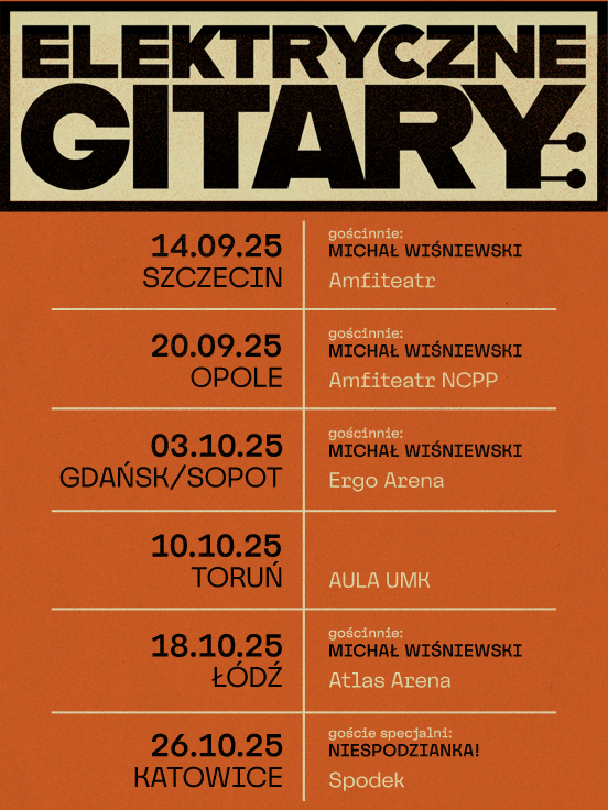 Serdecznie zapraszamy na trasę koncertową, która będzie nie tylko podróżą przez trzy dekady twórczości Elektrycznych Gitar, ale także świętem polskiego rocka w najlepszym wydaniu!