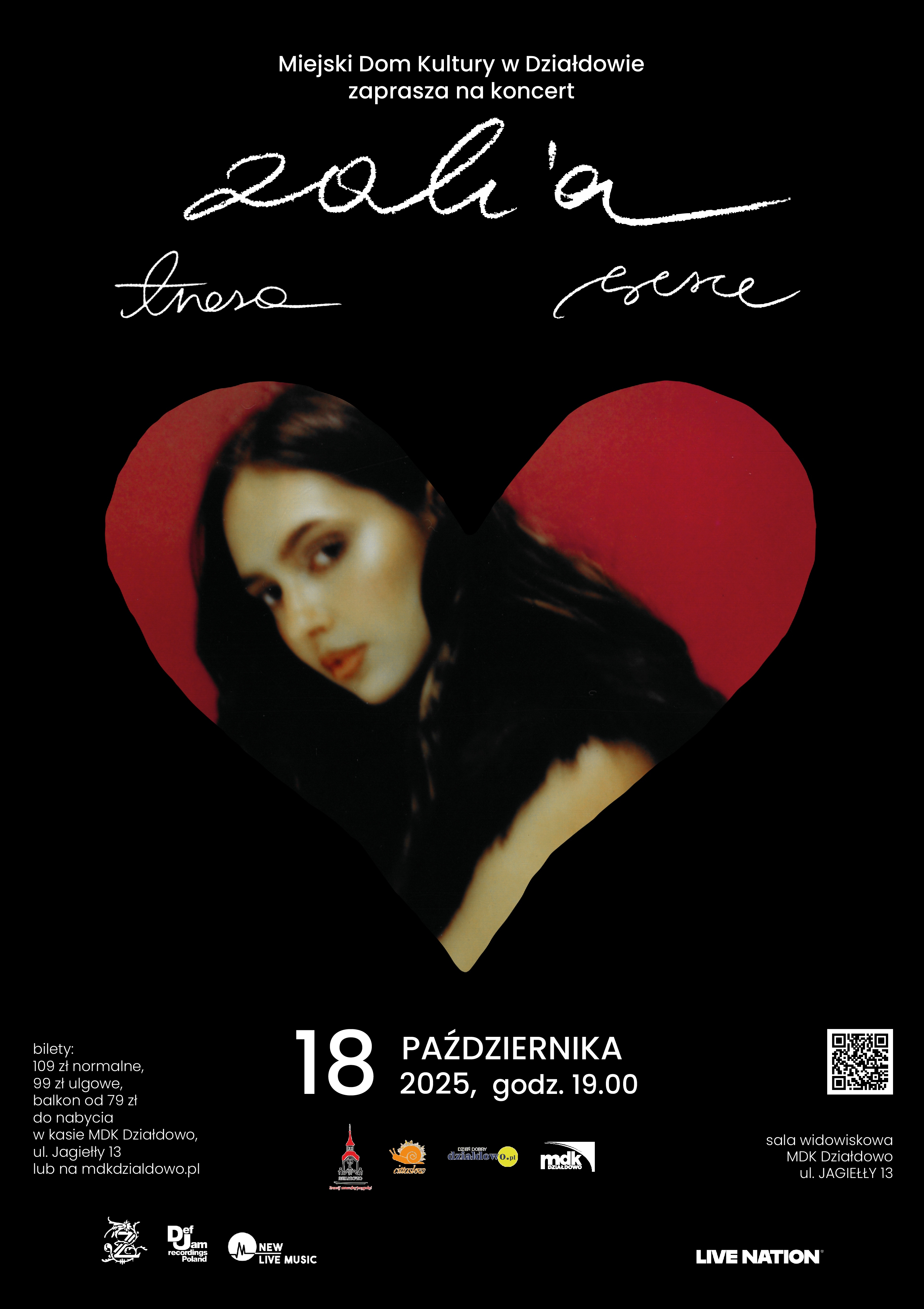 Po spektakularnym sukcesie wiosennej trasy koncertowej Z SERCA, ZALIA – jedna z najbardziej wyrazistych i utalentowanych artystek młodego pokolenia – ogłasza kolejną odsłonę swojego muzycznego projektu. Jesienią 2025 roku wokalistka wyruszy w trasę SERCE, która obejmie jeszcze więcej miast i większe sale koncertowe, odpowiadając na ogromne zainteresowanie i entuzjazm fanów.