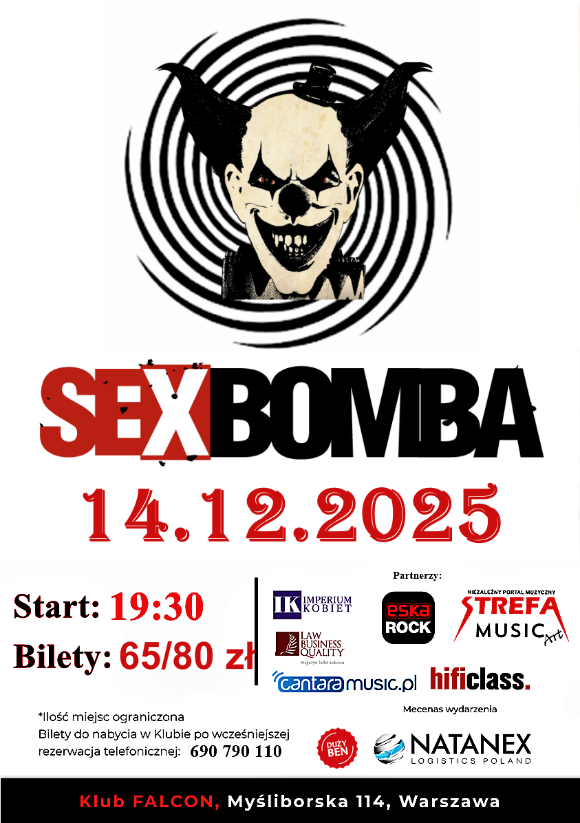 Strefa Music Art. i Klub Falcon Zapraszają na wyjątkowy koncert : Szykujcie się na wieczór, który naładuje Was jak turbo powerbank – SEXBOMBA uderza elektrycznym koncertem i nie bierze jeńców! 🔥