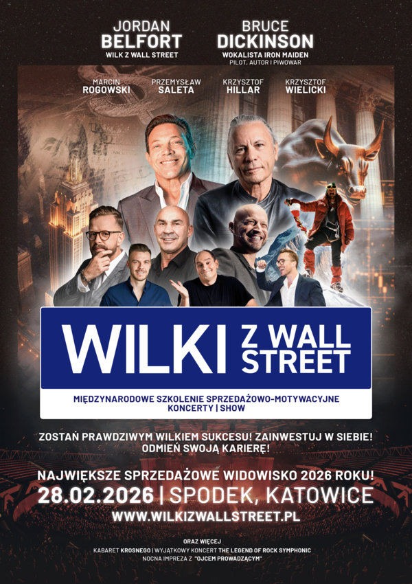 Kup Bilety🔥🐺 Największe widowisko sprzedażowo-motywacyjne 2026 już 28.02 w Spodku! Na scenie Jordan Belfort – "Wilk z Wall Street", Bruce Dickinson z Iron Maiden i inni giganci. 🚀 Zainwestuj w siebie, zdobądź nowe umiejętności i zostań liderem! 🎟️✨