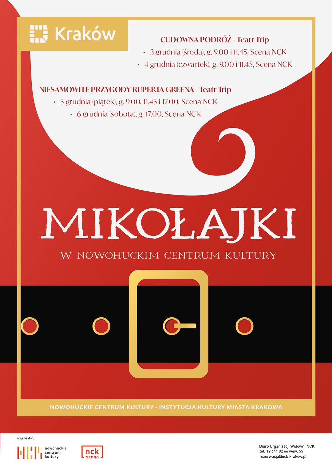 Spektakl zakończony spotkaniem ze Świętym Mikołajem, który rozda zakupione przez opiekunów prezenty.