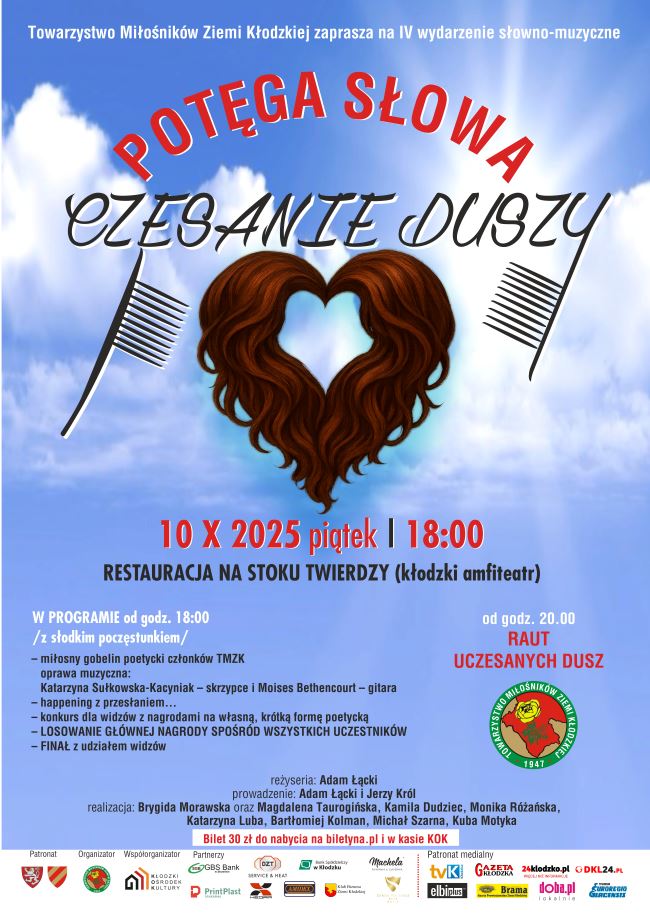 Towarzystwo Miłosników Ziemi Kłodzkiej zaprasza na kolejna edycję wydzarzenia słowno-muzycznego "Potega słowa", podtytuł "Czesanie duszy".