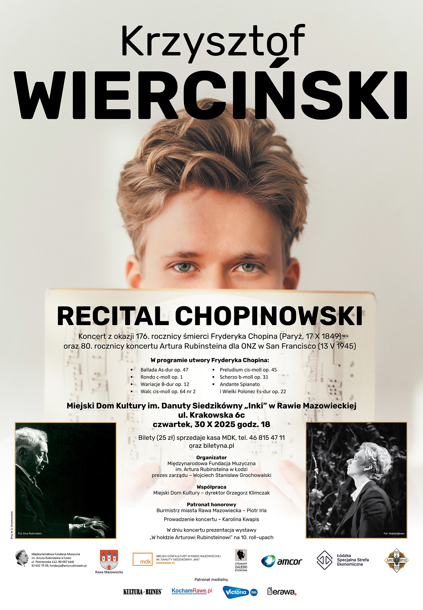 Koncert honorowym patronatem objął Burmistrz Rawy Mazowieckiej Piotr Irla. Poprowadzi go przedstawicielka naszego Domu Kultury - Karolina Kwapis. Muzyczne wydarzenie poprzedzi uroczyste otwarcie wystawy "W hołdzie Arturowi Rubinsteinowi".