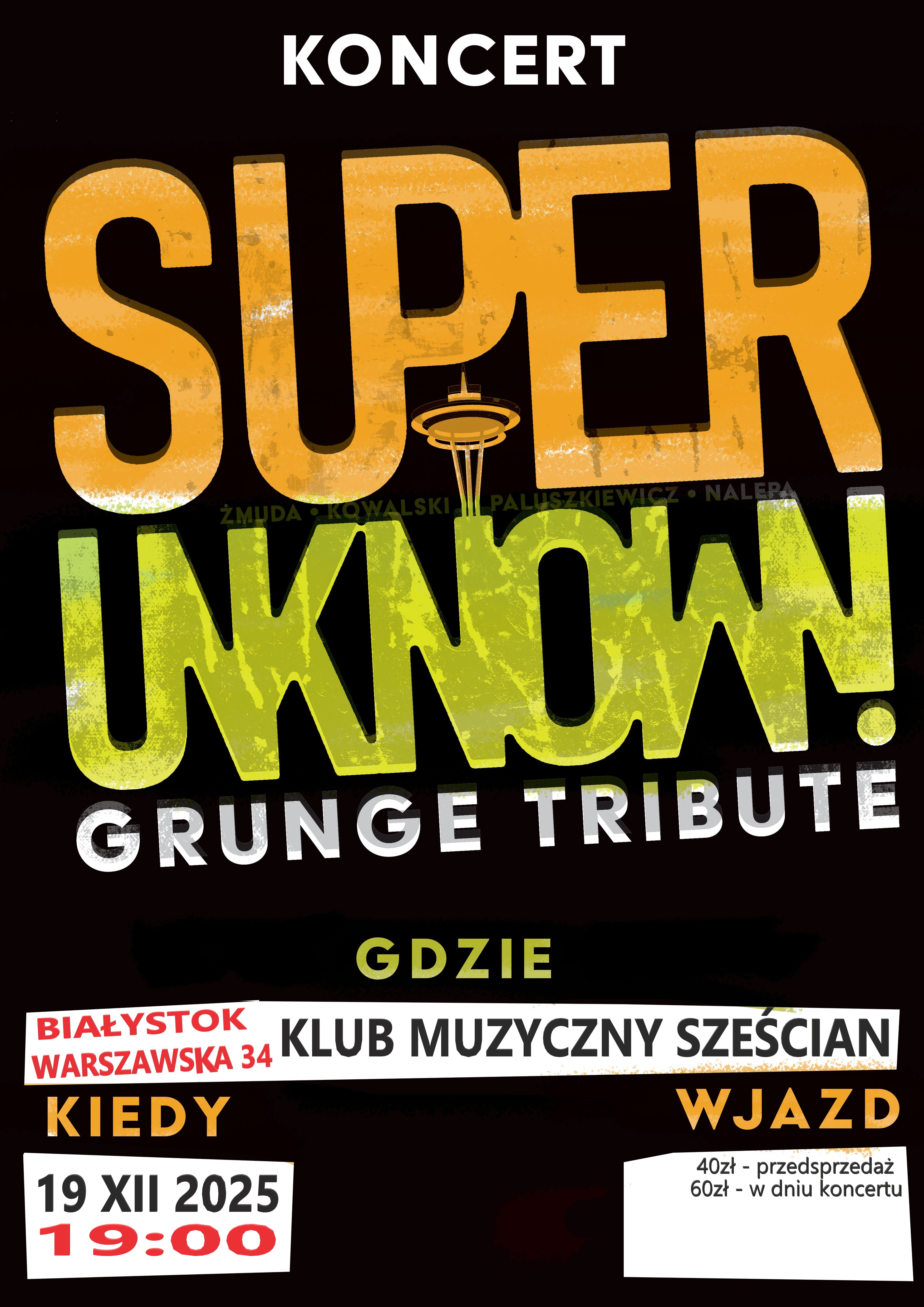 SUPERUNKNOWN GRUNGE TRIBUTE to banda grunge'owych zapaleńców, którzy przywracają ducha lat 90 w najlepszym stylu. Jedni z nas zapuszczali wtedy włosy, wiązali martensy i katowali Soungarden na walkmanach , inni przy pierwszych akordach "Smells Like Teen Spirit" uczyli się chodzić.
