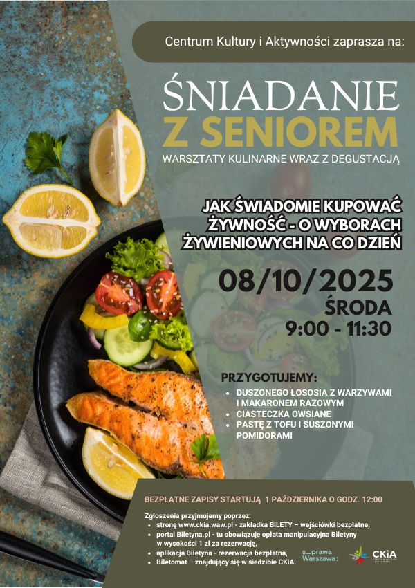 Centrum Kultury i Aktywności zaprasza 8 października 2025 r. na warsztaty kulinarne „Śniadanie z Seniorem” połączone z degustacją.