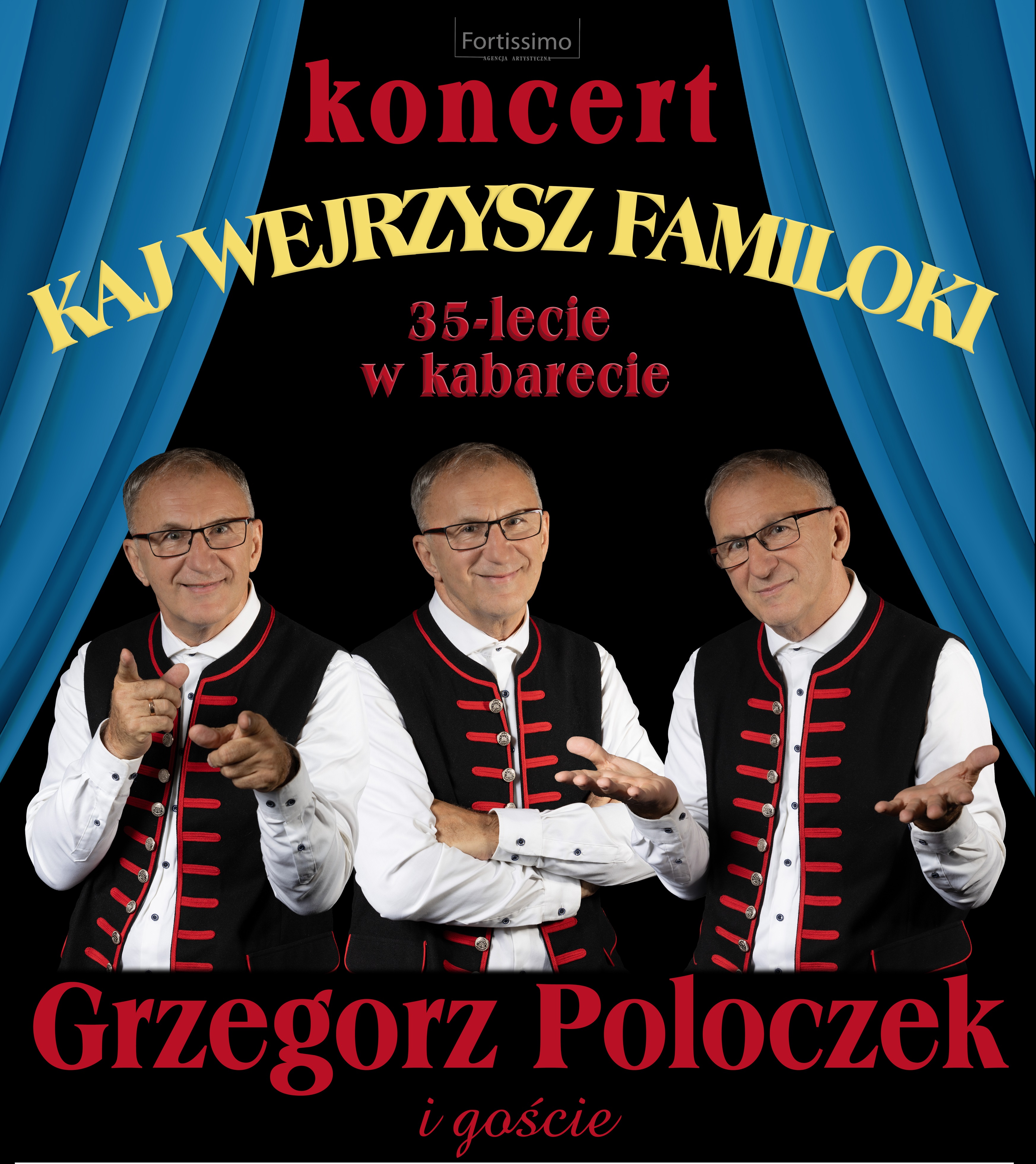 Zapraszamy na wyjątkowy koncert jubileuszowy Grzegorza Poloczka - artysty, który od lat bawi i wzrusza publiczność swoim niepowtarzalnym poczuciem humoru, śląskim temperamentem i ogromnym dystansem do siebie i świata. To będzie wieczór pełen muzyki, żartów i wspomnień, podczas którego usłyszycie największe przeboje, anegdoty z życia artysty oraz zupełnie nowe utwory. Przyjdź i przeżyj wyjątkowy wieczór-mnóstwo pozytywnej energii, śmiechu i prawdziwie śląskiej atmosfery!