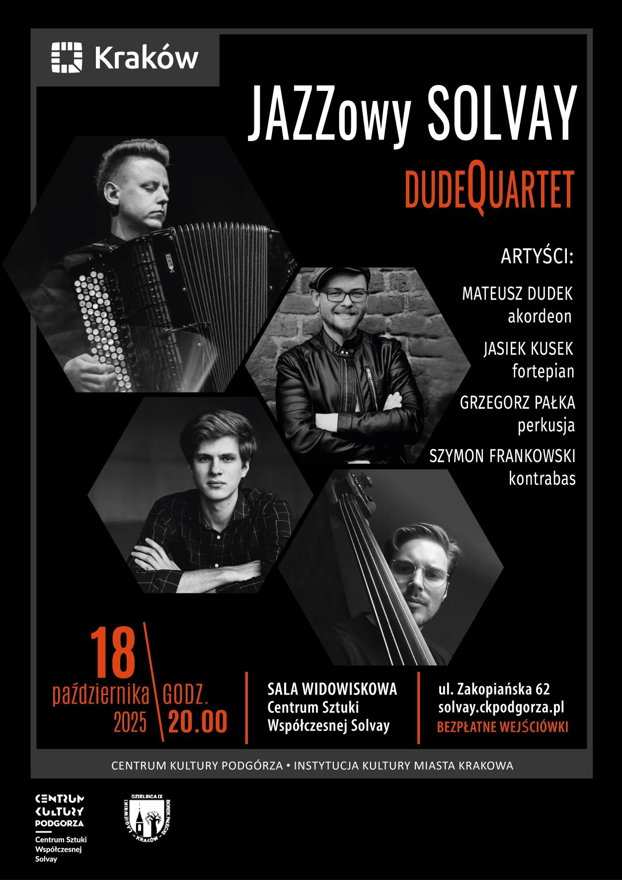 W ramach cyklu „Jazzowy Solvay” zapraszamy już 18 października o godzinie 20:00 na wyjątkowy koncert zespołu Dude Quartet, który zabierze publiczność w fascynującą muzyczną podróż „Od Paryża do Buenos Aires”.