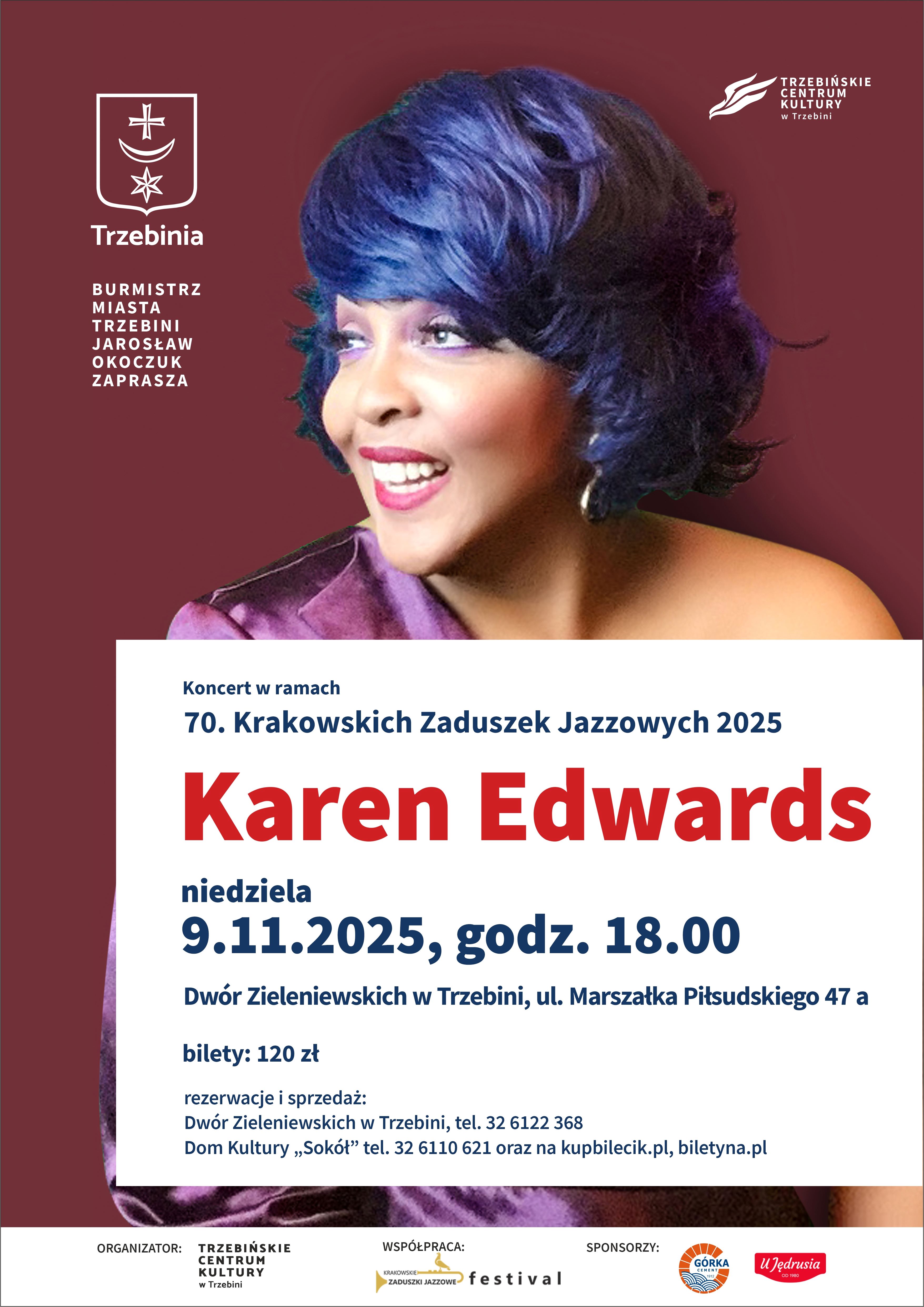 Koncert zaduszkowy towarzyszący 70-tym Krakowskim Zaduszkom Jazzowym. Gwiazdą wieczoru będzie Karen Edwards – amerykańska wokalistka, pianistka i kompozytorka, łącząca jazz, gospel i muzykę klasyczną. Współpracowała z takimi gwiazdami jak Stevie Wonder, Prince czy Tony Bennett. Jej koncerty słyną z kreatywnego łączenia stylów i energii scenicznej. Laureatka wielu nagród, występowała na prestiżowych scenach w USA i Europie, w tym w Polsce.