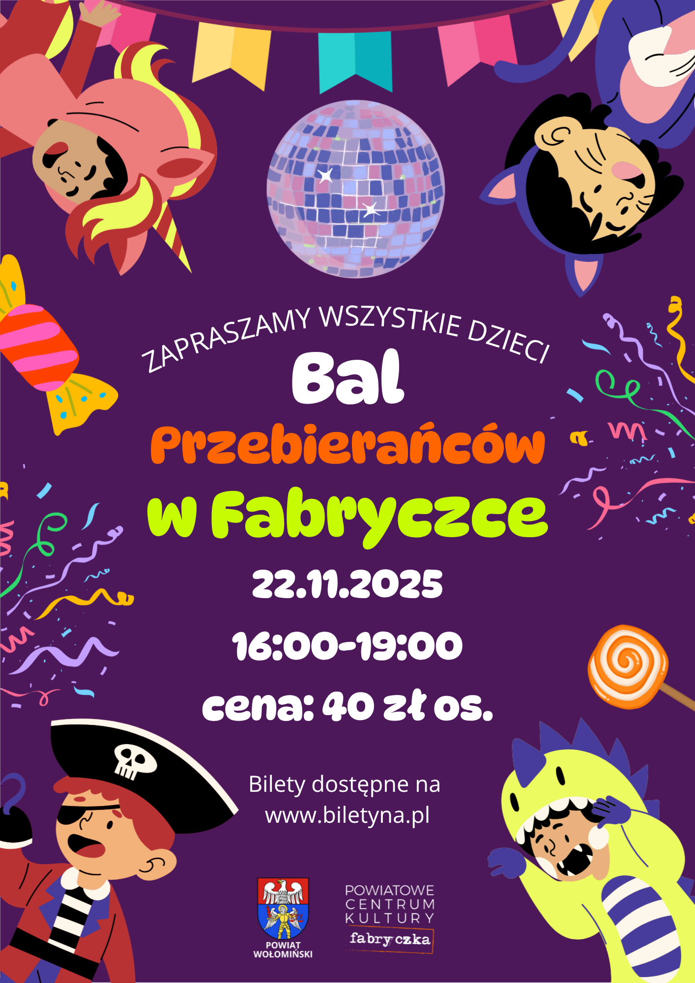 Zachęcamy do przebrania się za swoją ulubioną postać bajkową! Czeka na Was mnóstwo atrakcji: Zabawa dyskotekowa z DJ Animacje taneczne Spotkanie z żywą maskotką Gry i zabawy Słodki poczęstunek