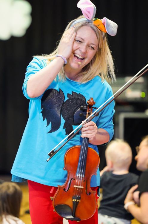 W urozmaiconej zabawą muzycznej podróży milusińskim towarzyszą fantastyczni muzycy filharmonii i orkiestr, a jednocześnie doświadczeni pedagodzy, którym przewodzi skrzypaczka i animatorka kultury - Dorota Banaś.