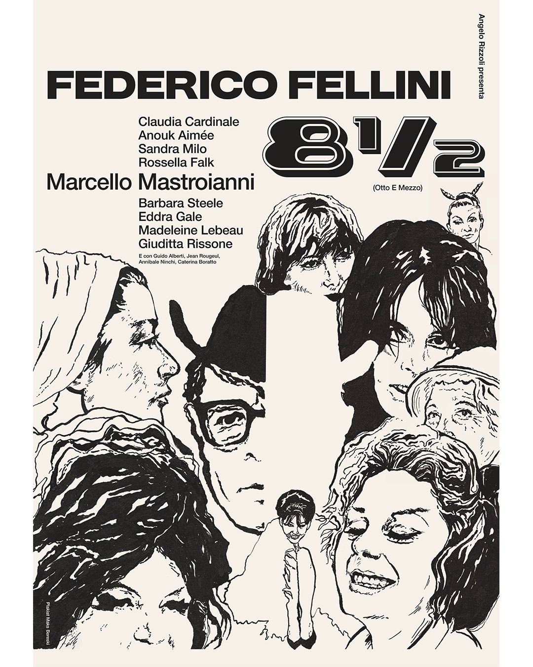 Guido Anselmi to alter ego Felliniego, uznany reżyser, który powinien właśnie kręcić swój dziewiąty, genialny film. Nie jest w stanie -mimo wielu teoretycznie niezłych pomysłów, nachodzi go zwątpienie i to zwątpienie w wielu sferach życia. Prywatnie Guido zadowala się bylejakością, kochanką, która jest mu obojetna i żoną, o której zrozumienie się nie stara. Marcello Mastroianni genialnie wciela się w kogoś kto nie jest bohaterem swojego życia, jedynie widzem.