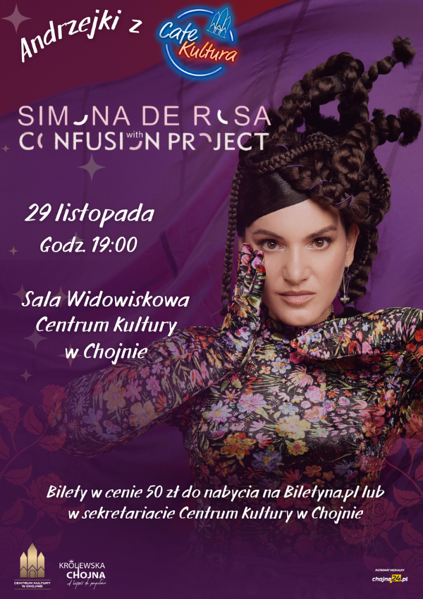 Po sukcesie wiosennej trasy koncertowej znakomita wokalistka z Neapolu, SIMONA DE ROSA powraca do Polski, by wraz z trójmiejskim triem CONFUSION PROJECT wystąpić w Chojnie! Album "Feathers", który artyści wspólnie stworzyli i wydali w marcu 2025 roku, spotkał się z ogromnym zainteresowaniem zarówno w Polsce jak i za granicą.