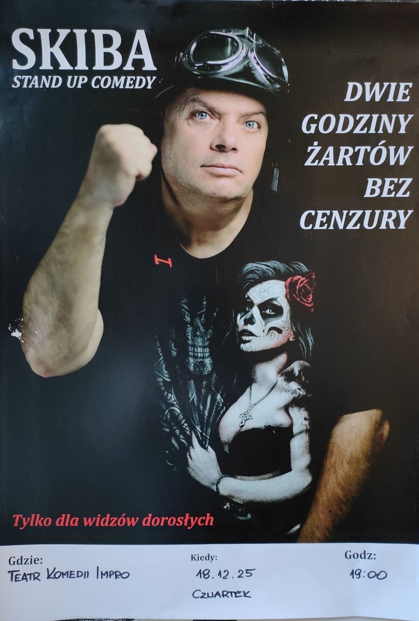 Krzysiek Skiba może się wreszcie wygadać do woli. Ujawni wstydliwe tajemnice show biznesu, opowie o kulisach estrady, obśmieje znanych i lubianych, zakpi z pomyłek polityków. Człowiek, który nie zna słów “tabu”, “cenzura” i “polityczna poprawność”. Słowny koktajl Mołotowa z płynem rozweselającym, beczka śmiechu o napędzie atomowym. Panie i Panowie! Czy jesteście na to gotowi? Czekają na Was dwie godziny zabójczych żartów bez cenzury! Spektakl przeznaczony jest dla osób dorosłych.