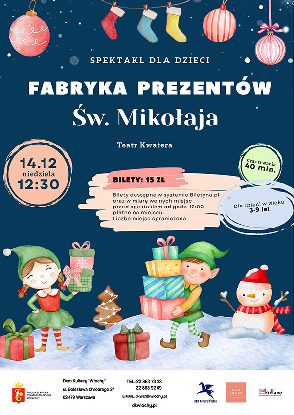 "Fabryka prezentów św. Mikołaja” to pełen magii i przygód spektakl teatralny.